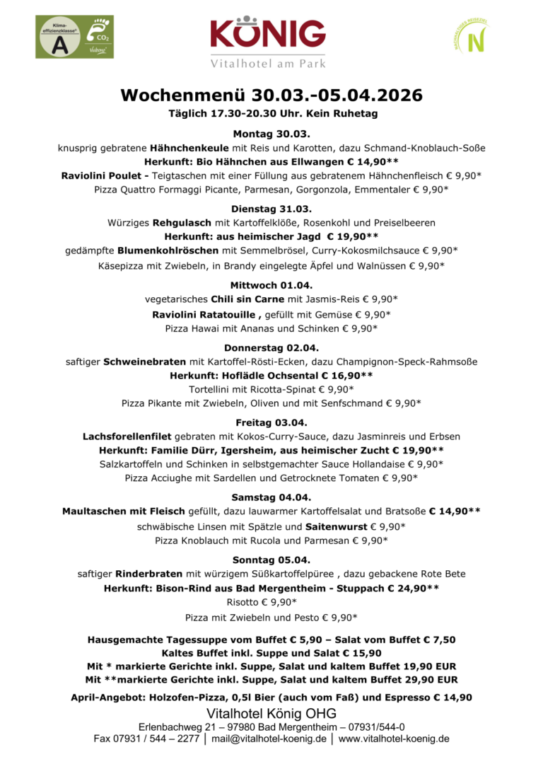 momentan sind wir telefonsch schwer erreichbar. Bitte schreiben Sie uns eine E-mail an mail@vitalhotel-koenig.de oder über das Kontaktformular. Sie können auch direkt über unsere Homepage buchen.